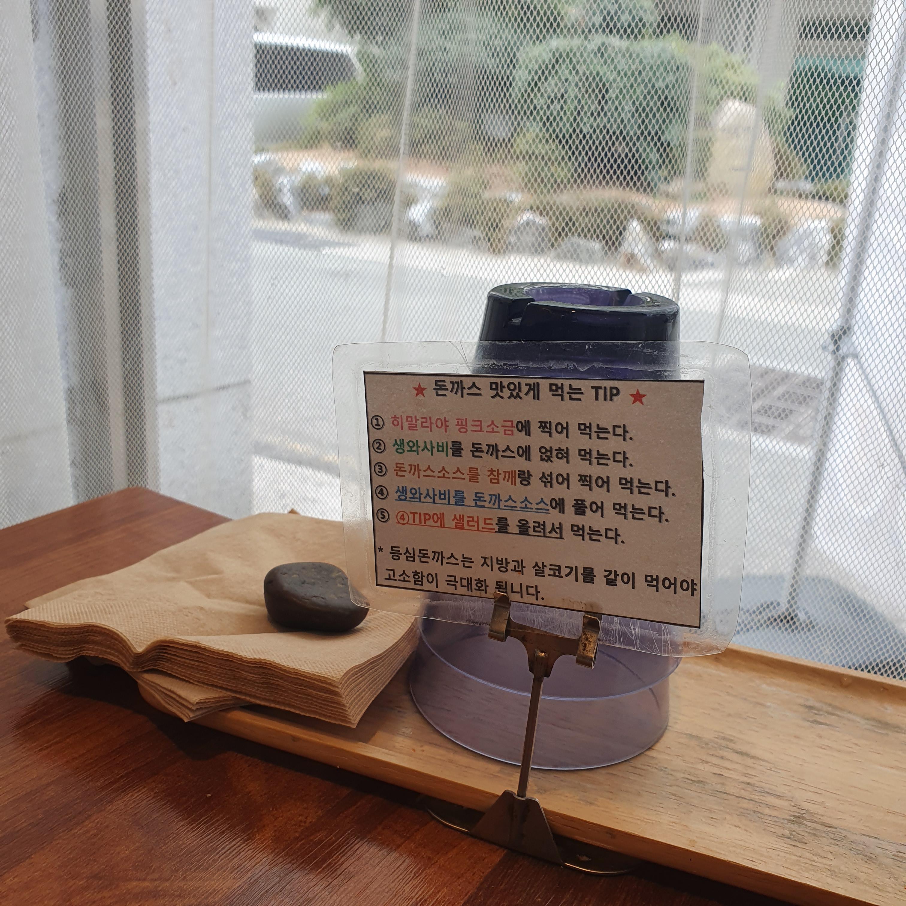 착석하고 자리에 앉아 돈까스 맛있게 먹는법을 읽어봅니다