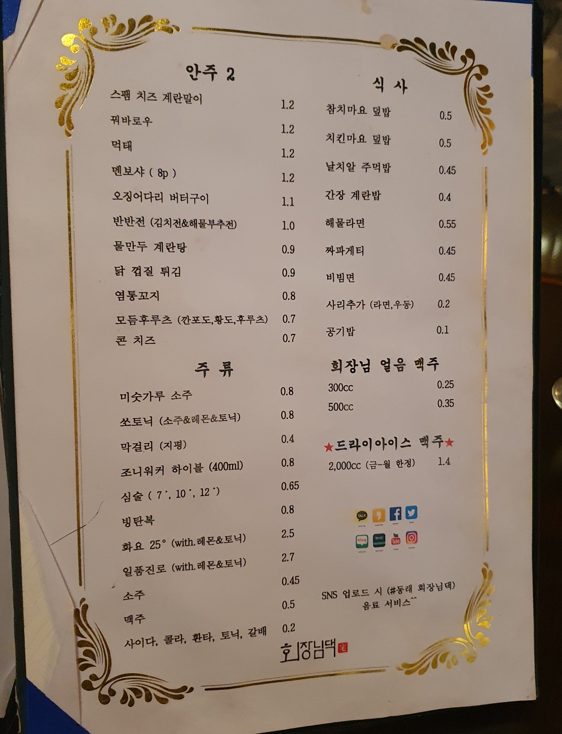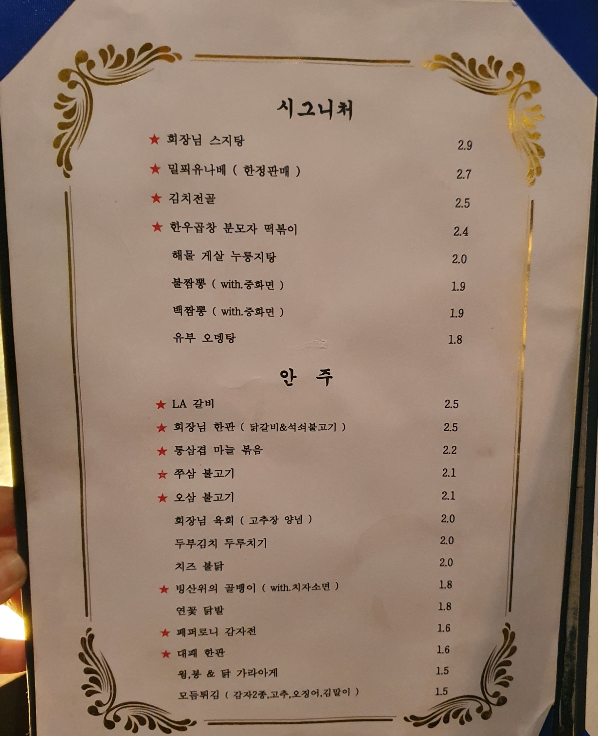 상장처럼 생긴 메뉴판을 주셔서 살펴봤어요.