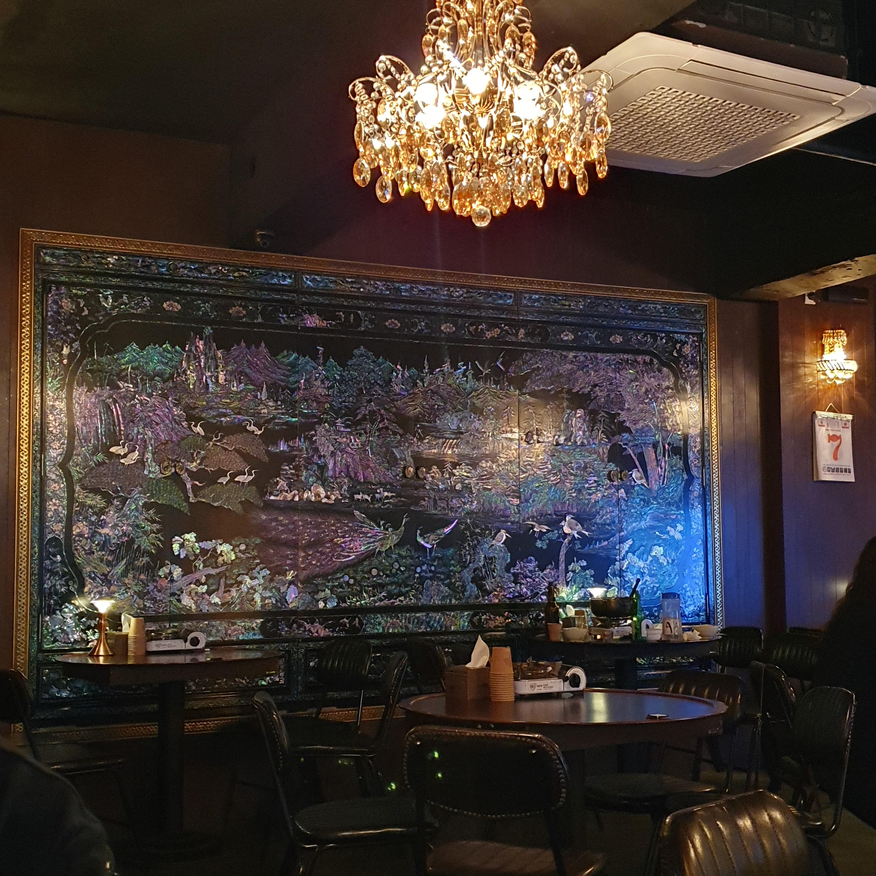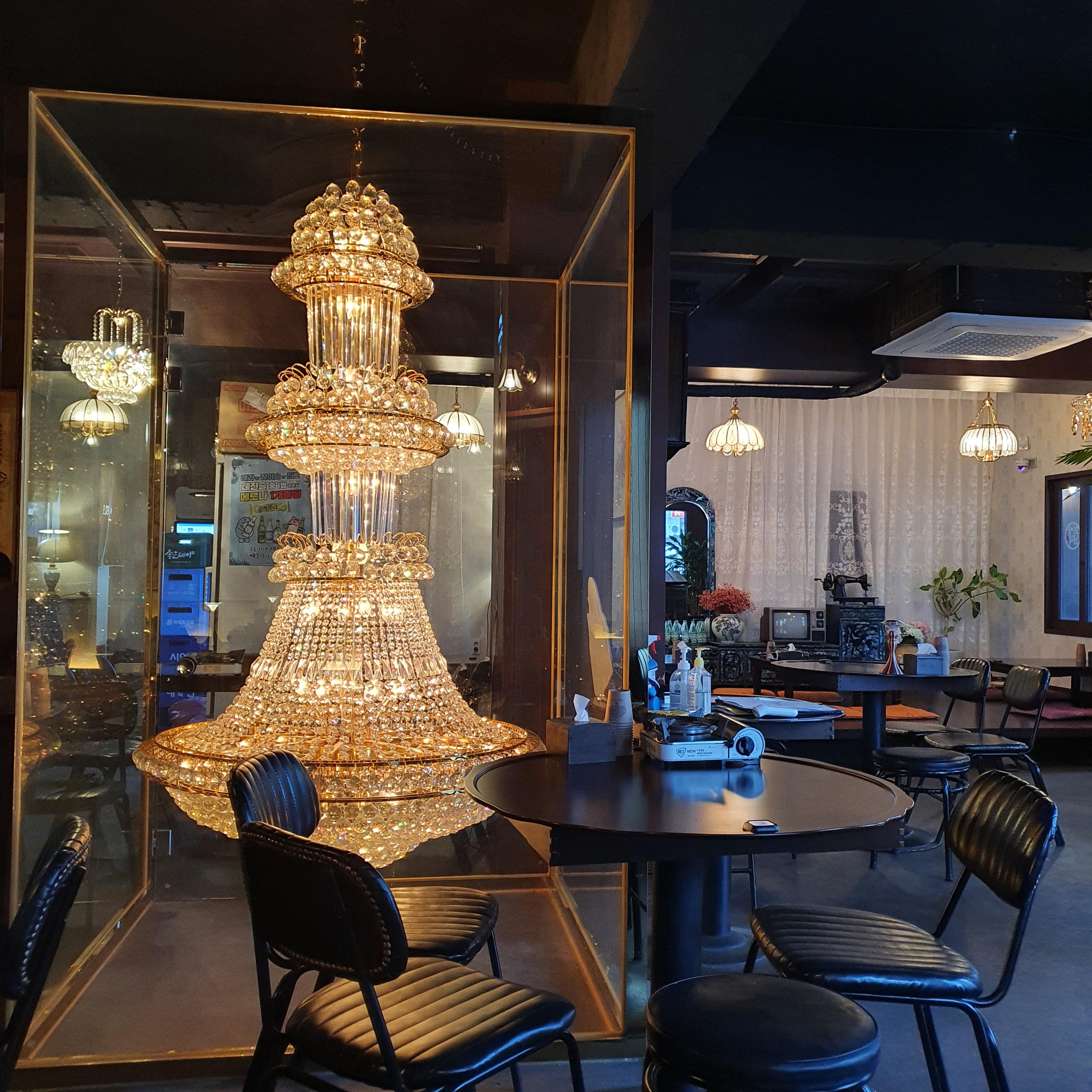 회장님댁의 시그니처인 화려한 샹들리에가 매장 한가운데에서 맞이합니다.