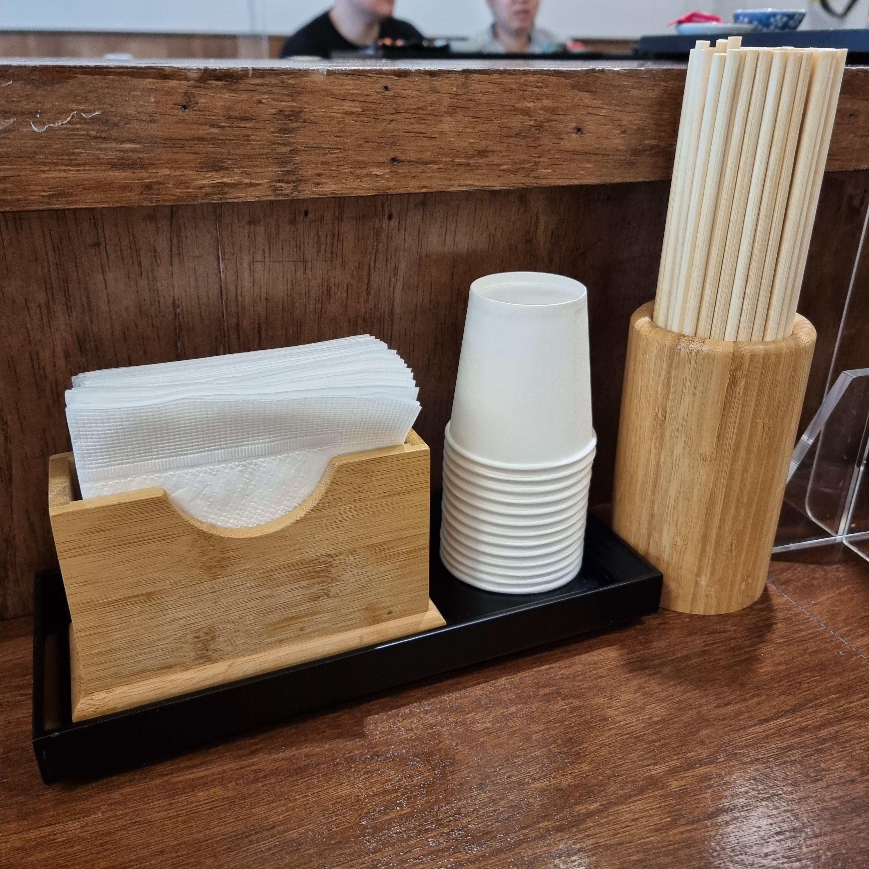 컵과 젓가락이 일회용으로 준비되어 있었어요.