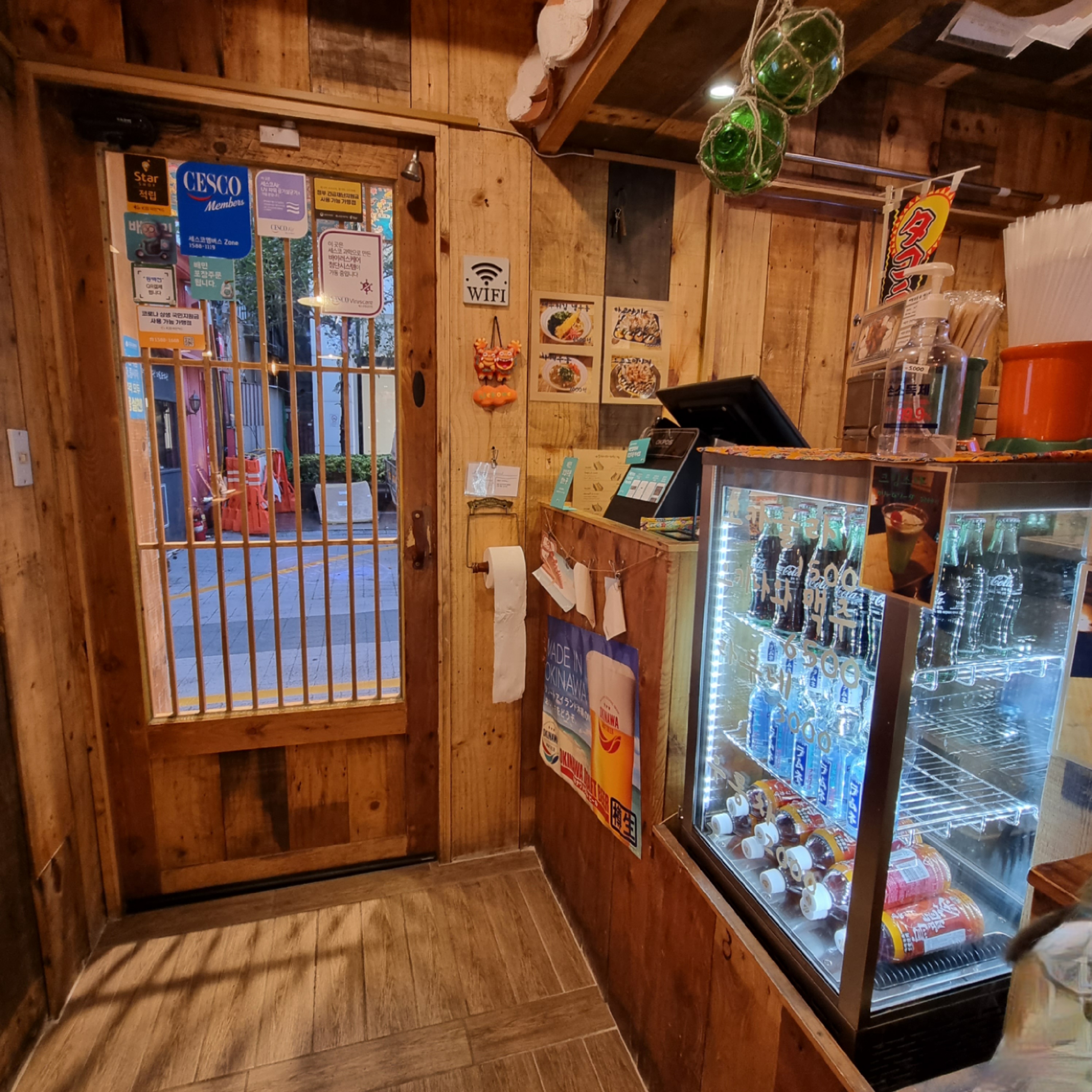 반대쪽엔 카운터와, 음료진열장이 있었습니다.