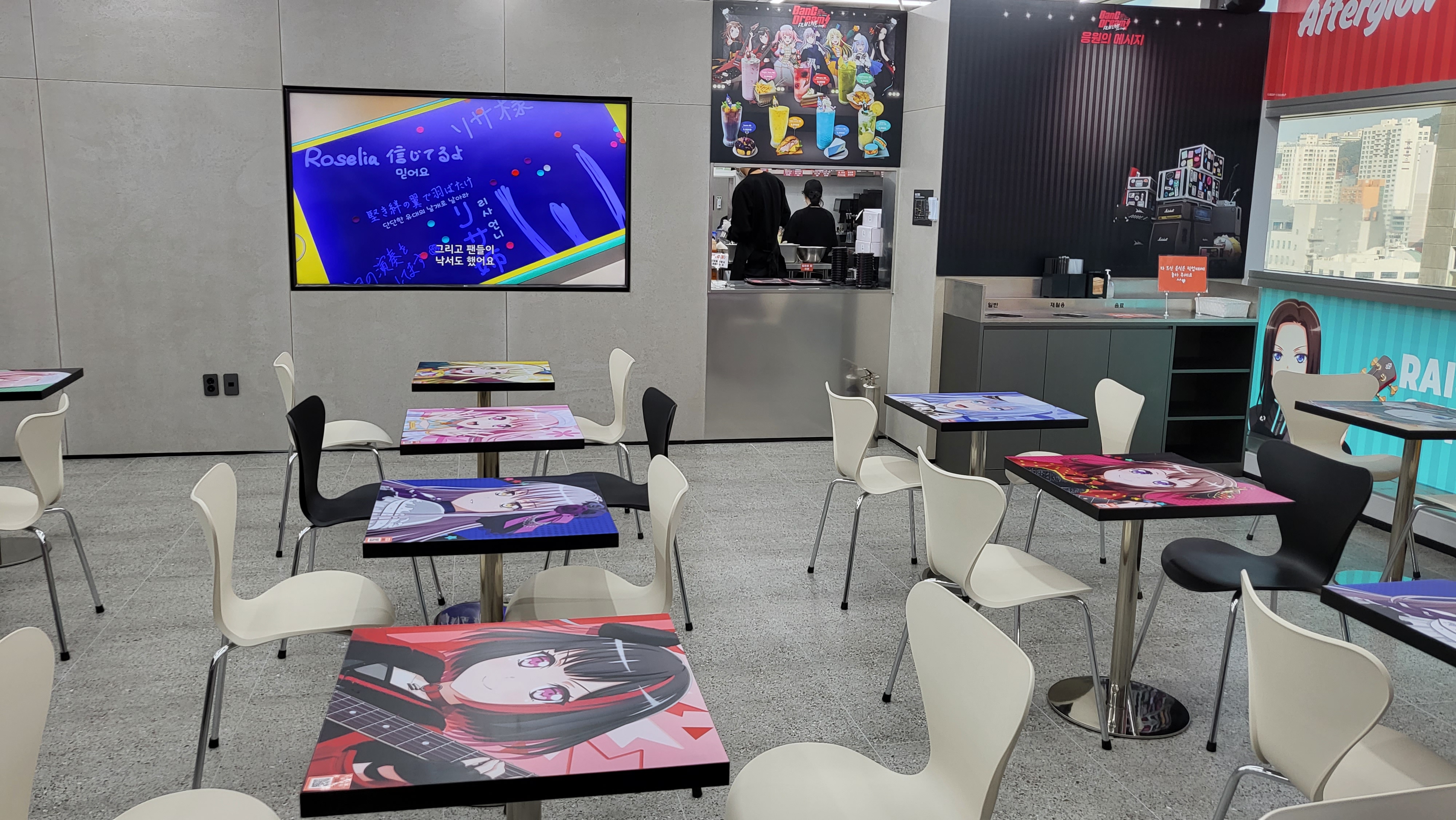 주방을 중간으로 양쪽에 다른 이벤트카페가 진행중이에요